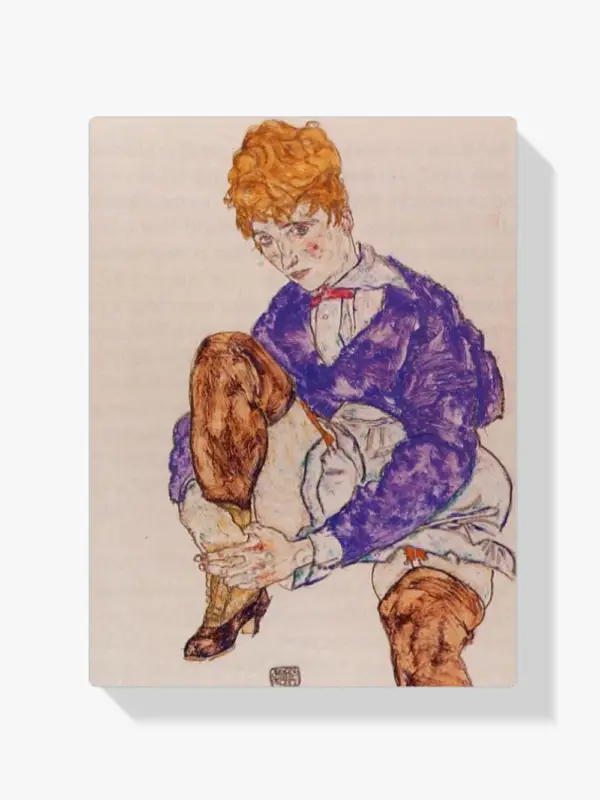 - Schilderen op nummer – Portret van de vrouw van de kunstenaar, zittend en haar rechterbeen vasthoudend.