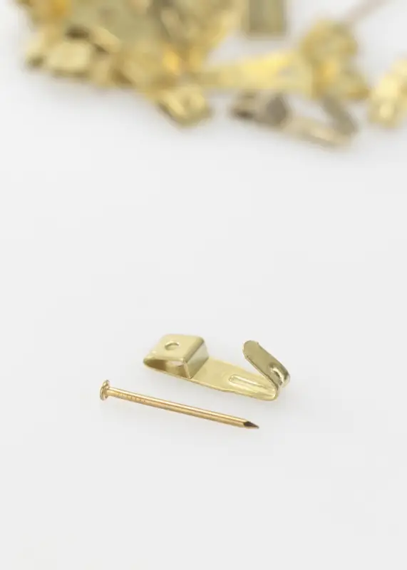 X-haak voor montage op een houten of gipsen wand. Belastbaar tot 5 kg. Messing kleurig.