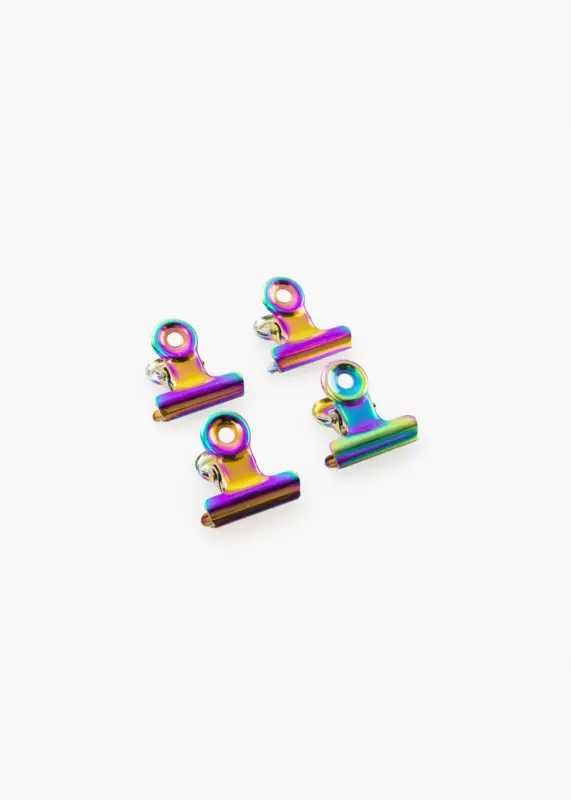 Een fraaie metalen clip in de kleuren van de regenboog en met blanke finish geeft je posters en prints een trendy, minimalistische look. De opening van de clip heeft een flexibele maar stevige grip waarmee je zowel superdun papier als prints van een grotere dikte kunt bevestigen. En als je een grote poster hebt, gebruik dan twee metalen clips. De stijlvolle clip heeft gaten in de bovenkant en is daarom eenvoudig met een spijker of schroef aan de muur te bevestigen.