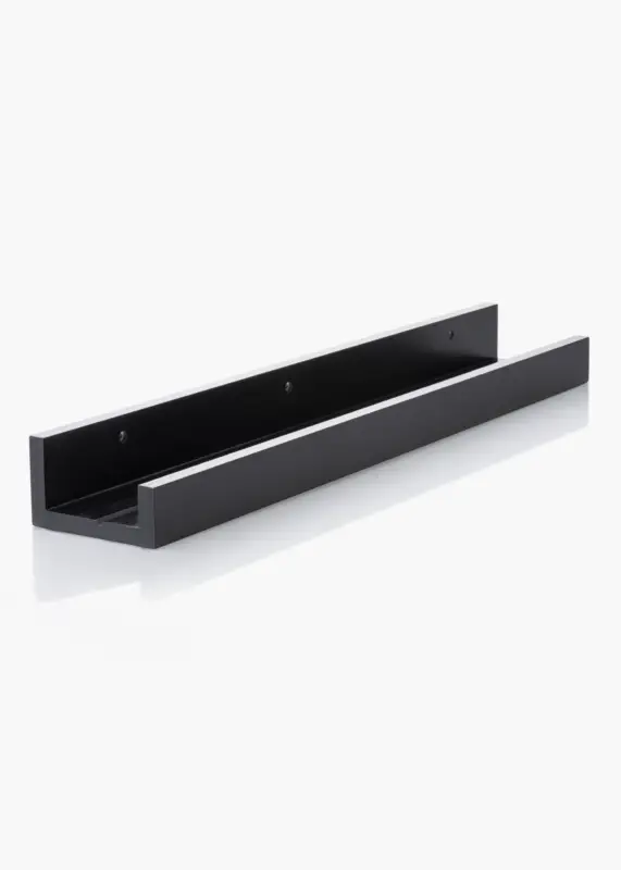 Toon en varieer je muurkunst eenvoudig en stijlvol met een elegante schilderijenplank! Deze schilderijenplank is gemaakt van MDF en is trendy zwartgeschilderd met een mooie, halfglanzende afwerking. De schilderijenlijst heeft een strak ontwerp met rechte, eenvoudige lijnen en een minimalistisch gevoel. De plank heeft een gefreesde sleuf in het midden die dient als steun voor je schilderijen en ze een mooie hoek geeft waar ze tegen de muur leunen.