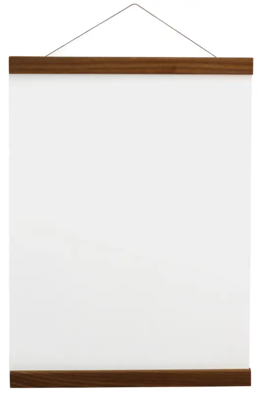 Je kunt je poster eenvoudig tussen de twee lijsten van de posterhanger monteren met behulp van de bijbehorende magneten.