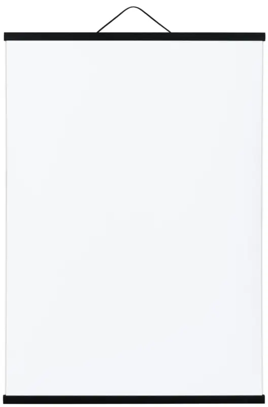 Je kunt je poster eenvoudig tussen de twee lijsten van de posterhanger monteren met behulp van de bijbehorende magneten.