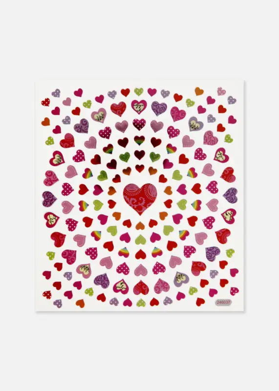 Geef je spullen een oppepper met onze zelfklevende stickers in de vorm van kleine hartjes! Deze stickers zijn voorzien van mooie glitterdetails die je spullen snel en gemakkelijk veranderen in iets extra speciaals. Elk vel meet 15×16,5 cm en bevat een groot aantal hartjes in verschillende maten.