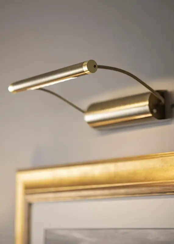 Draadloze, praktische batterij-aangedreven schilderijspot in een stijlvolle messingkleur.
