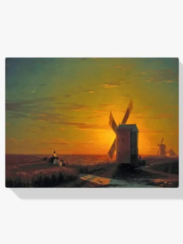 • Schilderen op nummer – Windmolens in de Oekraïense Steppe bij zonsondergang.