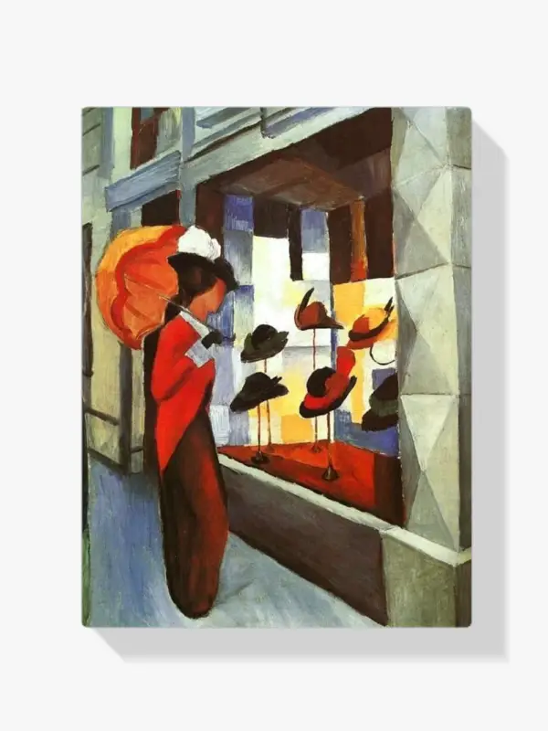 - Schilderen op nummer – Vrouw met paraplu voor een hoedenwinkel.