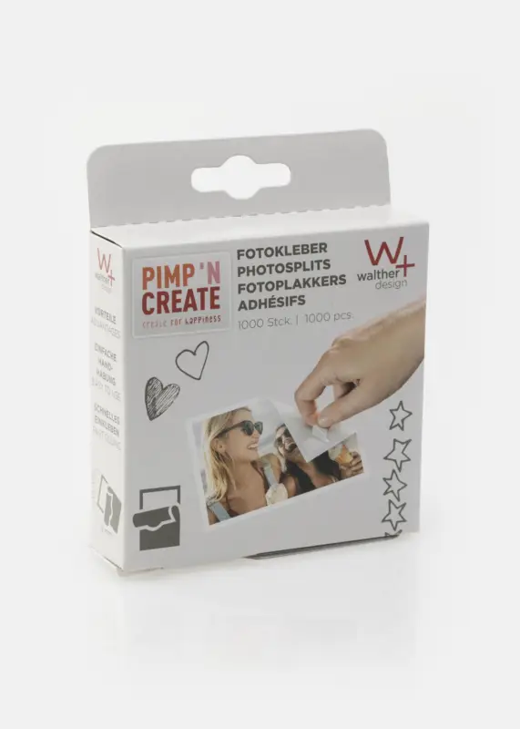 Geen droogtijden meer of wegpoetsen van overvloedige lijm met gebruik van deze dubbelzijdige tapestrips! Deze tape is gemakkelijk om mee te werken en houdt effectief je foto’s op hun plek.